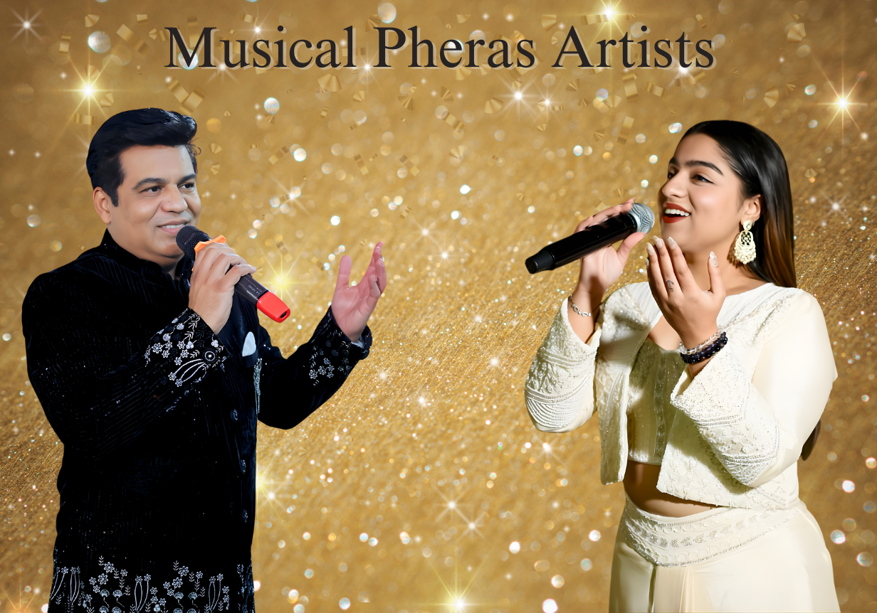 Surinder Sehaj & Abhedika Sehaj are renowned Musical Pheras Specialist Artists in Delhi NCR, known for narrating each phera, mantra, and vow through live melodious singing. Their soulful voices create a sacred atmosphere that allows couples and families to deeply connect with the rituals and blessings.